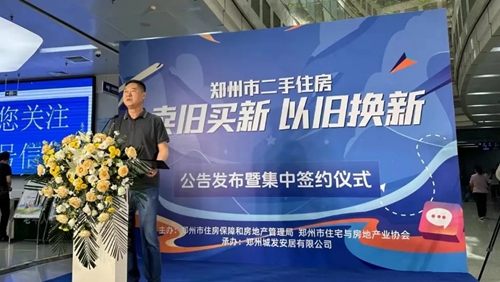 5月10日上午,由鄭州市住房保障和房地產管理局、鄭州市住宅與房地產業協會主辦的鄭州市二手住房“賣舊買新、以舊換新”公告發布暨集中簽約儀式在鄭州市房屋交易中心召開。