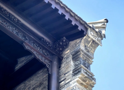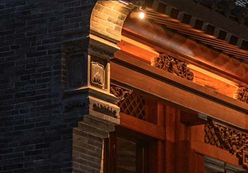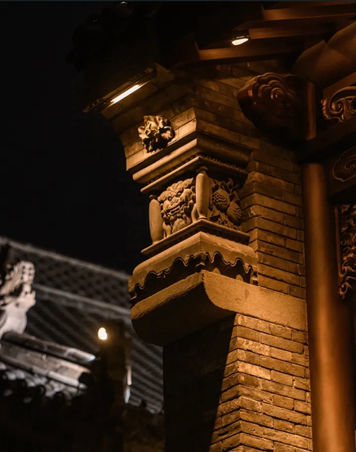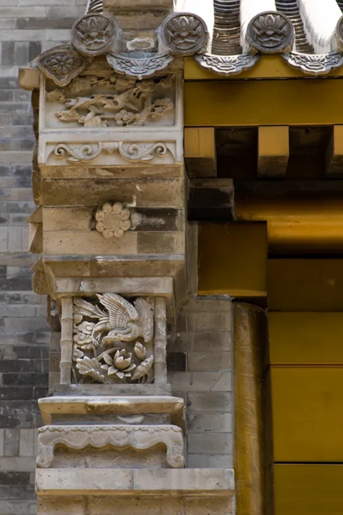與之相對的17號樓主題為仙鶴,主題靈感來自于“仙鶴的故鄉”鶴壁。建筑上精美的墀頭也表達了此棟院子的主題,其上段位仙鶴,寓意松鶴延年,墀頭下端位仙鹿,寓意福祿綿長。而這處雕刻精美又涵義豐富的墀頭設計來源于河南鶴壁的古城摘星臺公園。