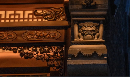 12號樓主題為獅子,主題來源于三門峽靈寶函谷關,象征“事事如意”的獅子在柱子、平板枋、額枋、卡子花、假梁頭等構件均有出現。